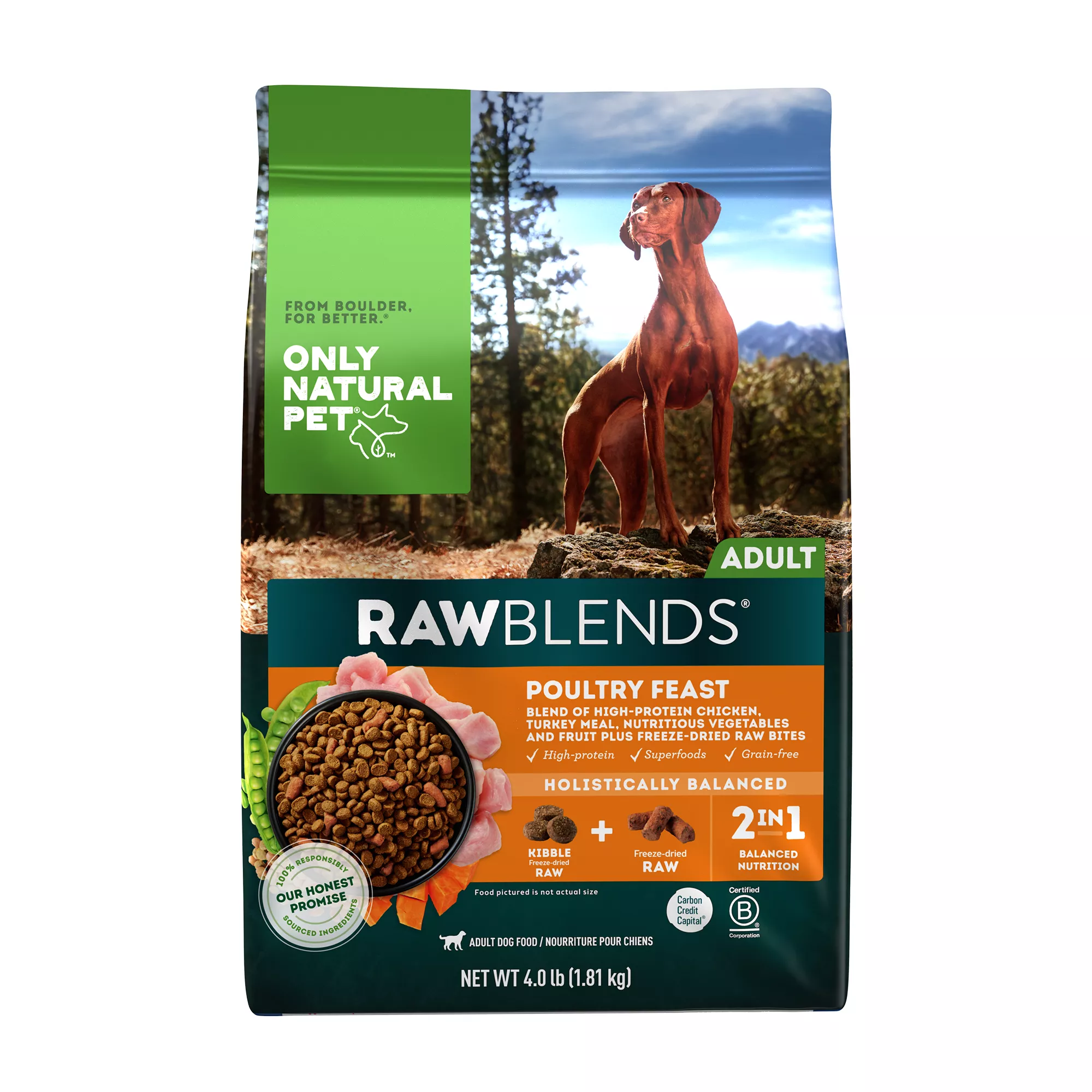Only Natural Pets RawBlends Adult Dog Food - Grain Free, With Freeze Dried Bites, Poultry Feast